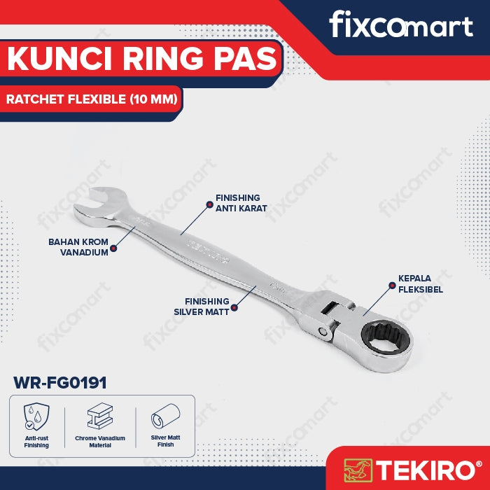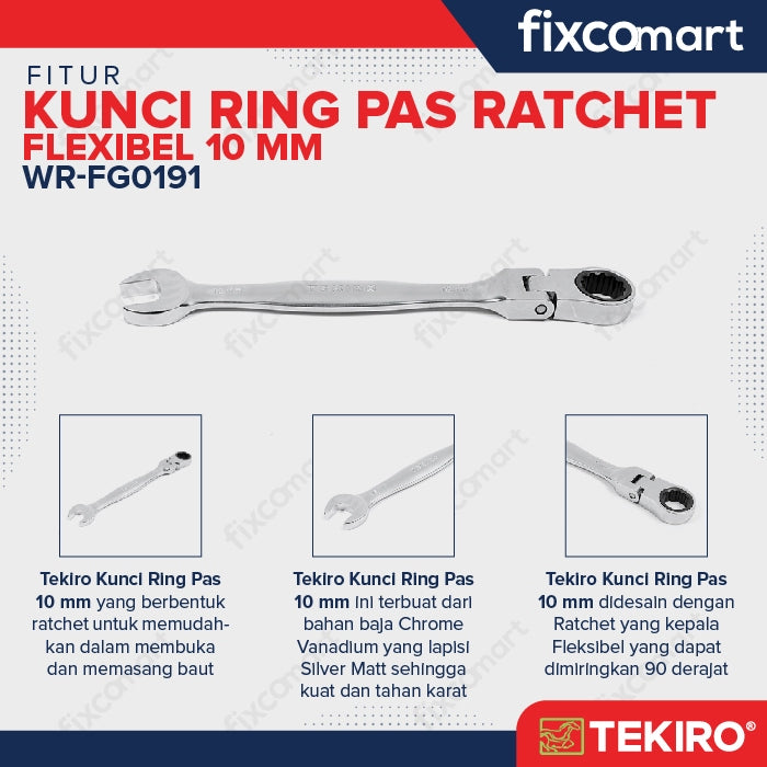 Tekiro Kunci Ring Pas Ratchet Flexsibel 10 mm