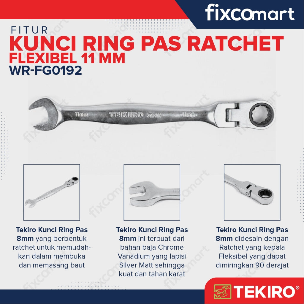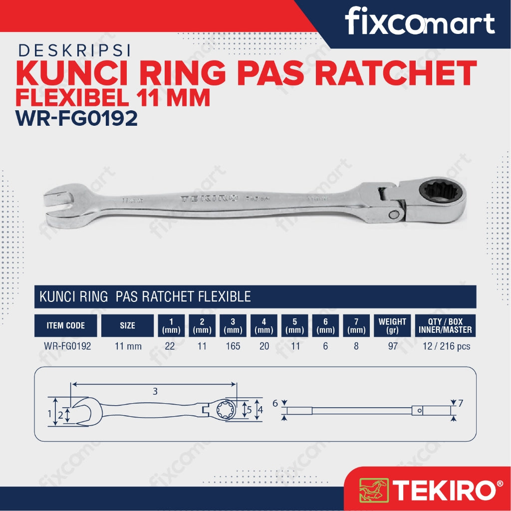 Tekiro Kunci Ring Pas Ratchet Flexsibel 11 mm