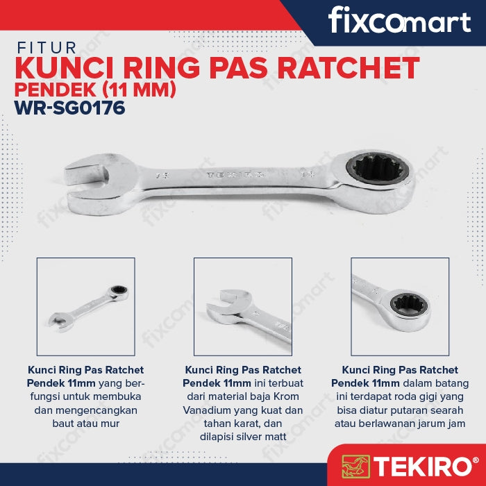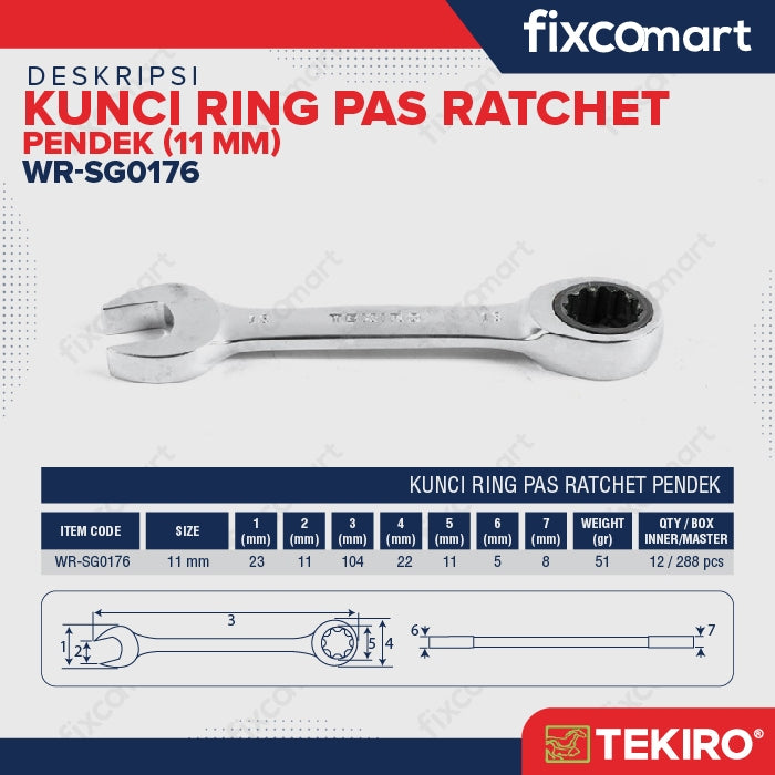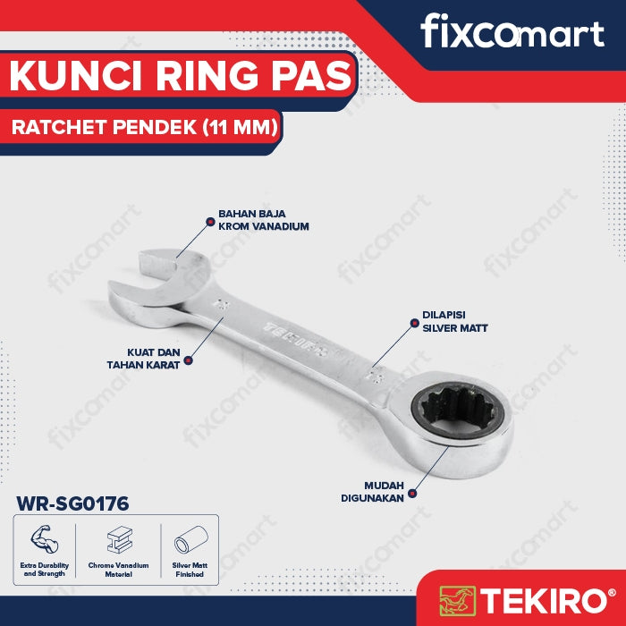 Tekiro Kunci Ring Pas Ratchet Pendek 11 mm