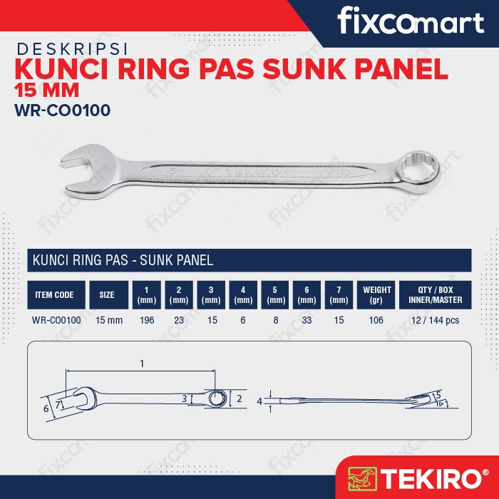 Tekiro bination Wrench - Sunk Panel 15 mm