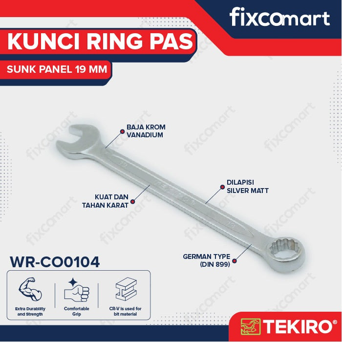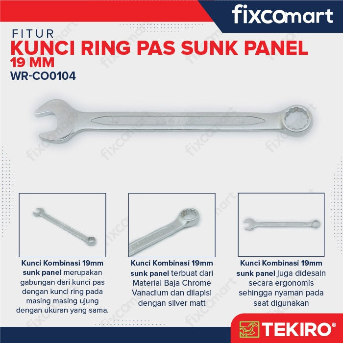 Tekiro Kunci Ring Pas Sunk Panel 19 mm - Combination Wrench