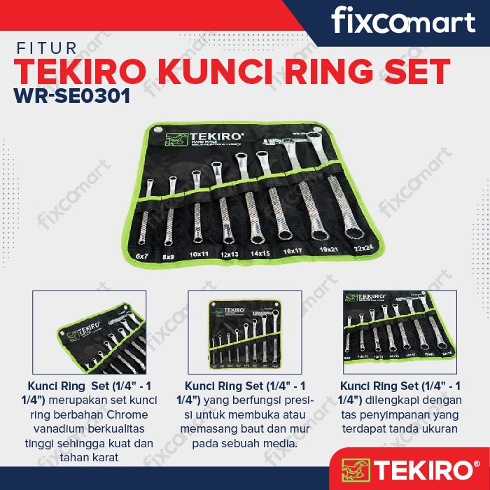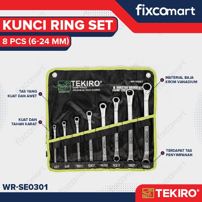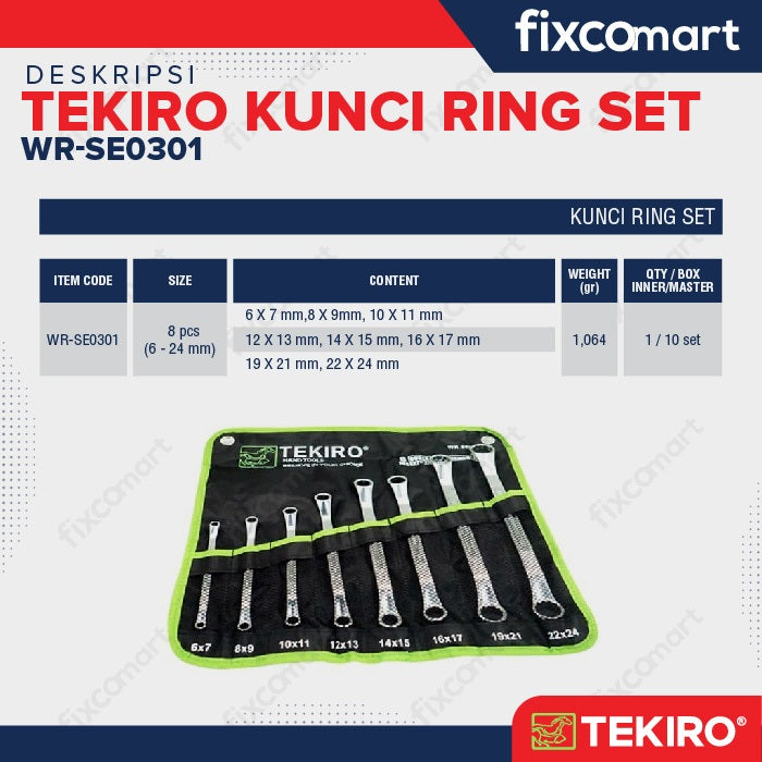 Tekiro Kunci Ring Set 8 Pcs (6-24 Mm) / Tekiro Box End Wrench Set
