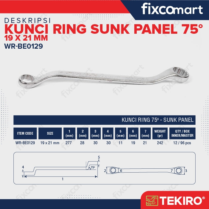 Tekiro Kunci Ring Sunk Panel 19X21 mm / Box End Wrench