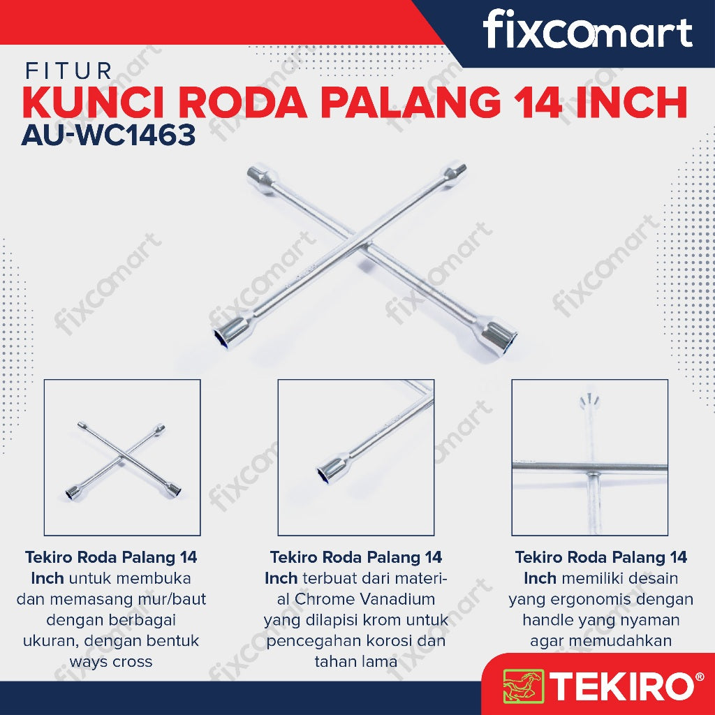 TEKIRO Kunci Roda Palang adalah peralatan mekanik yang digunakan oleh para mekanik untuk memudahkan pekerjaan dalam melakukan pelepasan dan juga pemasangan roda dengan fungsi alat ini yaitu untuk melepaskan dan mengencangkan mur roda. Alat ini dibuat khusus agar bisa digunakan untuk melakukan pemasangan dan pelepasang mur roda yang terpasang sangat kuat pada roda. Kunci roda palang memiliki desain unik seperti palang atau tanda silang, bentuk yang unik ini digunakan untuk mempermudah penggunaan, yaitu untuk mempermudah saat pemutara kunci untuk pelepasan dan pemasangan mur roda. Alat kunci ini terbuat dari baja yang sangat kuat dan dilapisi stanless anti karat sehingga lebih tahan lama.