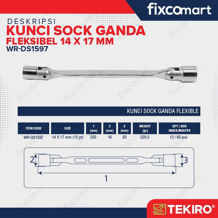 Tekiro Kunci Sock Flexible 14X17 Mm / Tekiro Kunci Sock Ganda