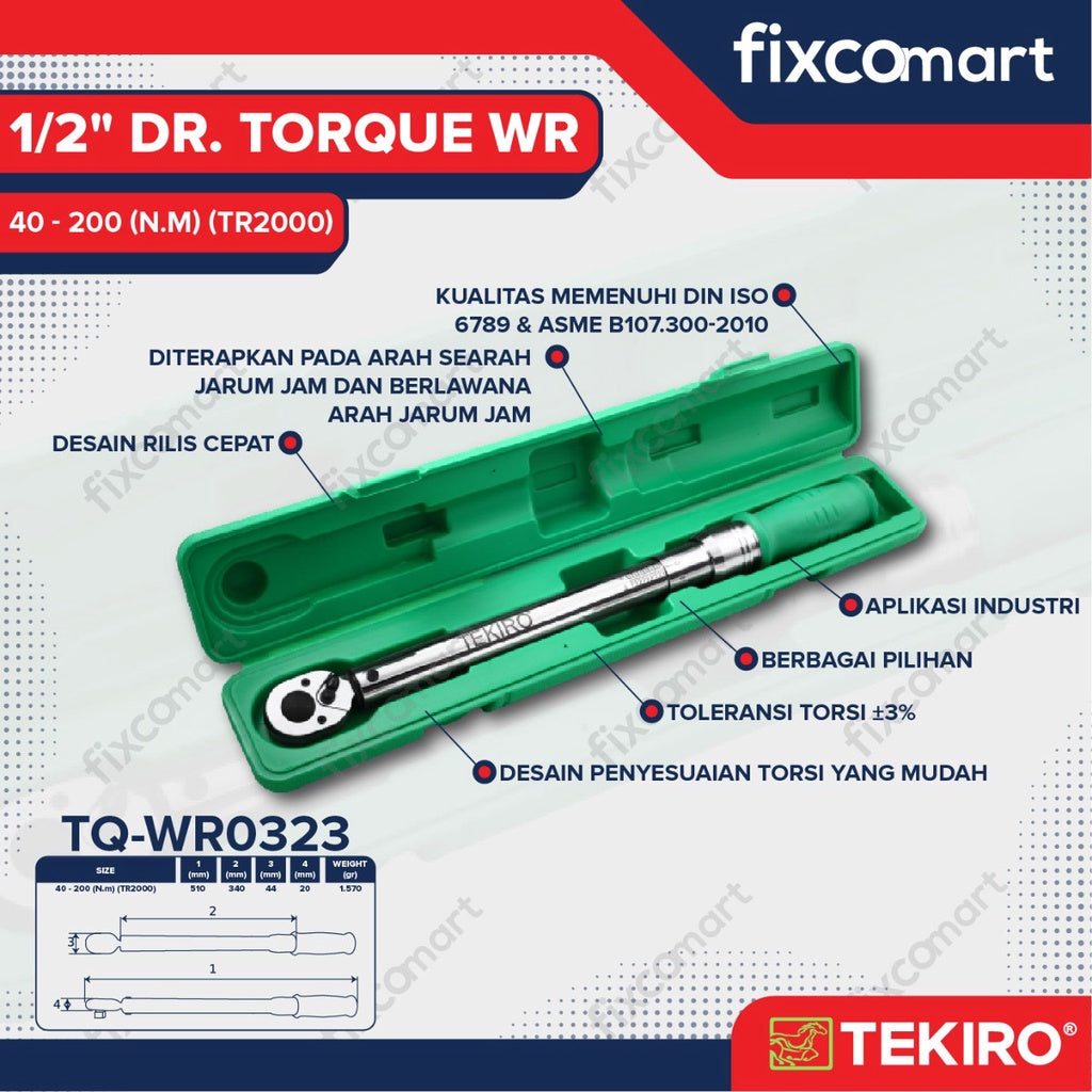 Tekiro Kunci Torsi 1/2 Inch 40-200 N.M (Tr2000) / Tekiro Kunci Momen / Kunci Torque