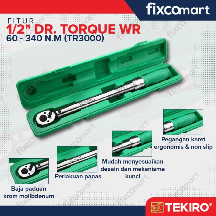 Tekiro Kunci Torsi 1/2 Inch 60-340 N.M (Tr3000) / Tekiro Kunci Momen / Kunci Torque