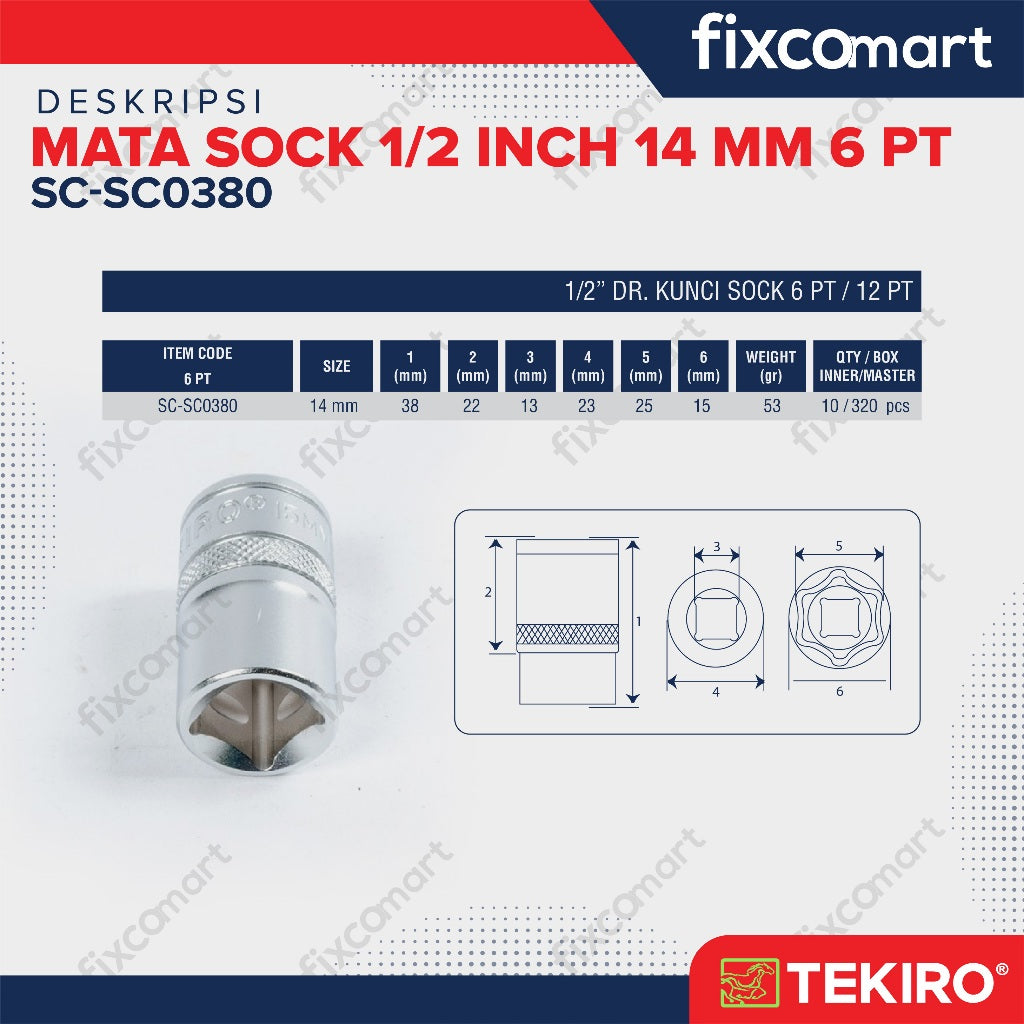 Tekiro Mata Sock 1/2 Inch 14 mm 6PT