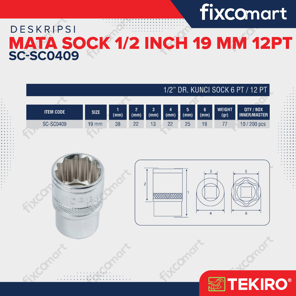 Tekiro Mata Sock 1/2 Inch 19 mm 12 PT / Tekiro Mata Socket
