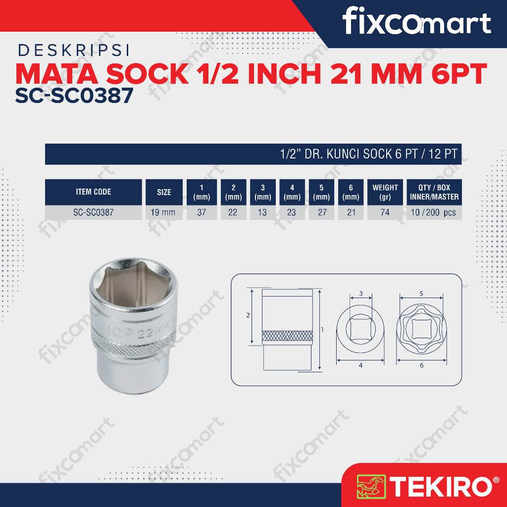 Tekiro Mata Sock 1/2 Inch 21 mm 6PT