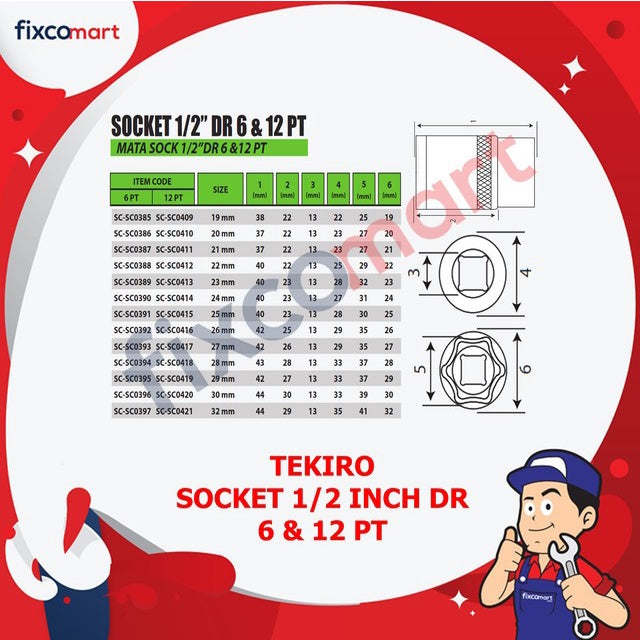 Tekiro Mata Sock 1/2 Inch 32 mm 6PT