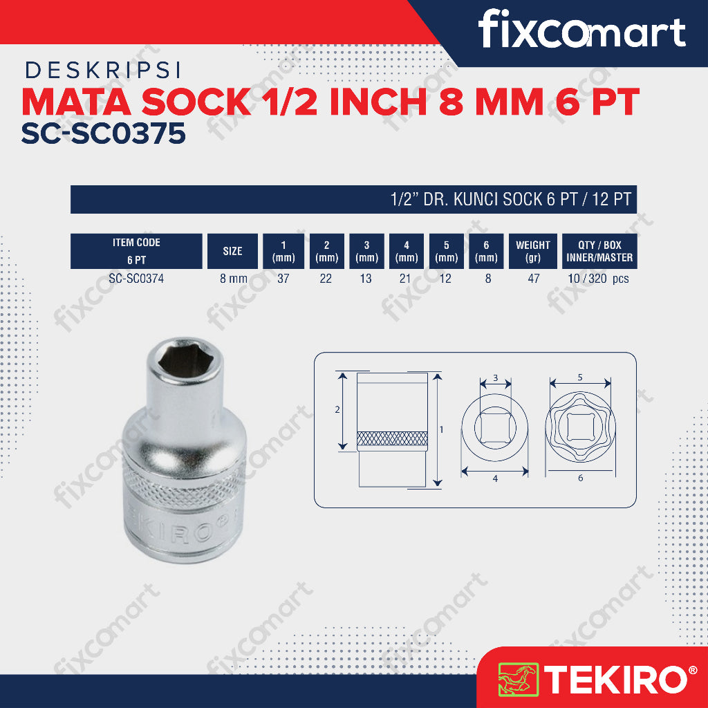 Tekiro Mata Sock 1/2 Inch 8 mm 6PT