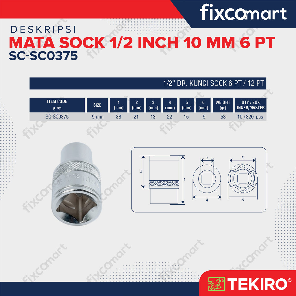 Tekiro Mata Sock 1/2 Inch 9 mm 6PT