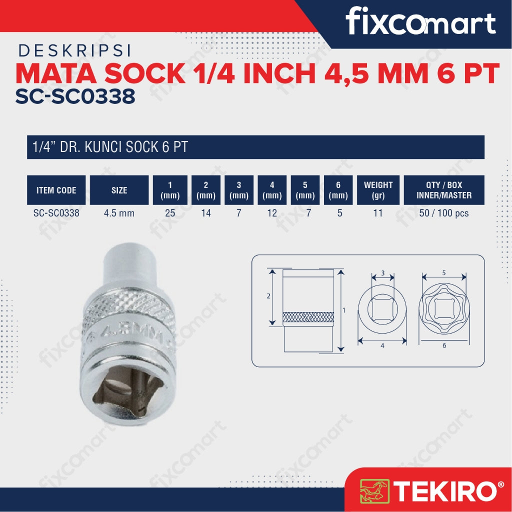Tekiro Mata Socket 1/4" 4.5 mm 6 PT