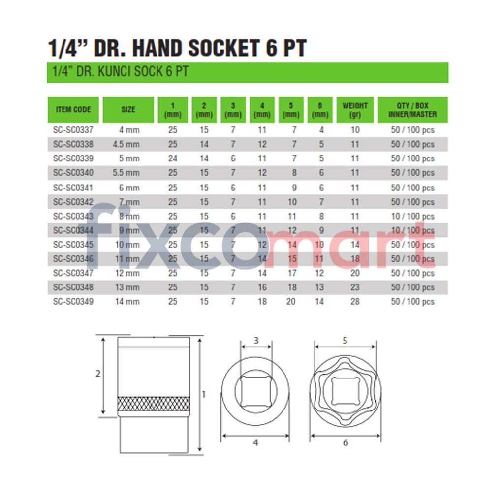 Tekiro Mata Socket 1/4" 9 mm 6 PT
