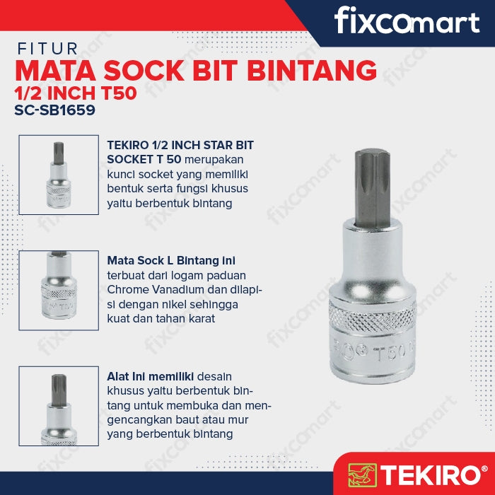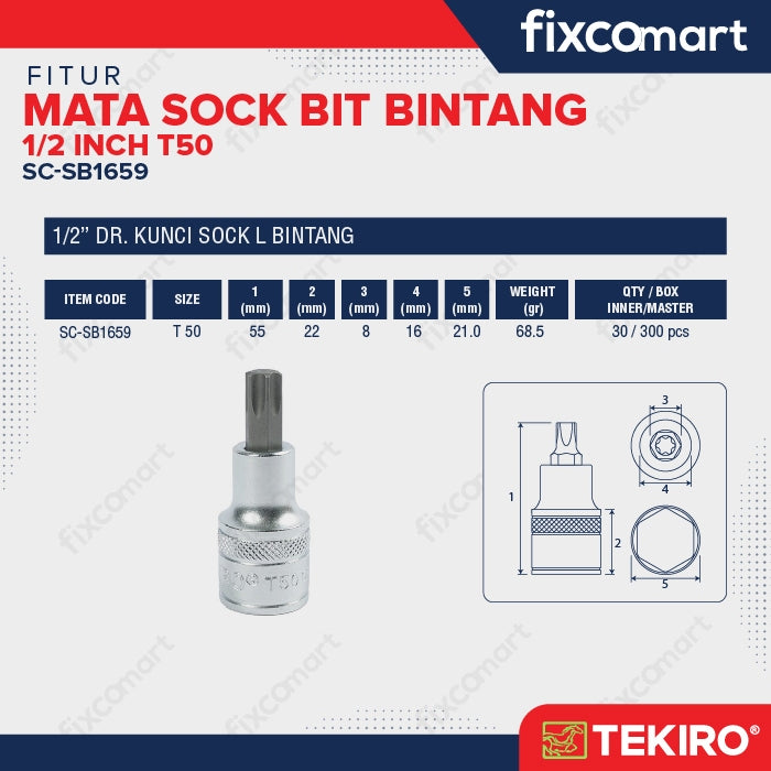 Tekiro Mata Sock Bit Bintang 1/2 Inch T50 - Tekiro Star Bit Socket
