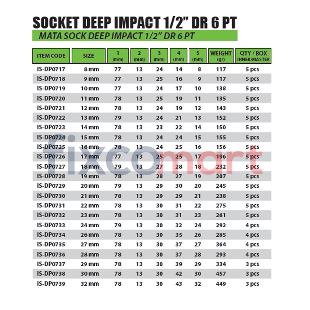 Berbagai macam mata socket yang tersedia di untuk memenuhi perlengkapan perkakas Anda, termasuk Mata Sock Deep Impact yang merupakan jenis mata socket kuat dan presisi.