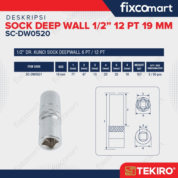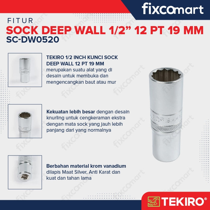 Tekiro Mata Sock Deep Waal 1/2 Inch 19 Mm 12Pt