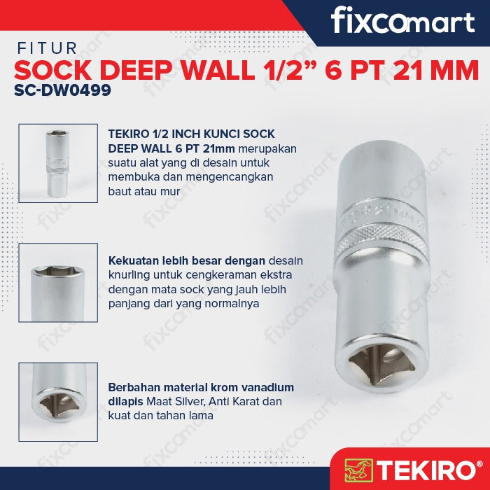 Tekiro Mata Socket Deep Wall 1/2 Inch 21 mm 6PT
