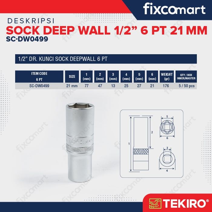 Tekiro Mata Sock Deep Waal 1/2 Inch 21 Mm 6Pt