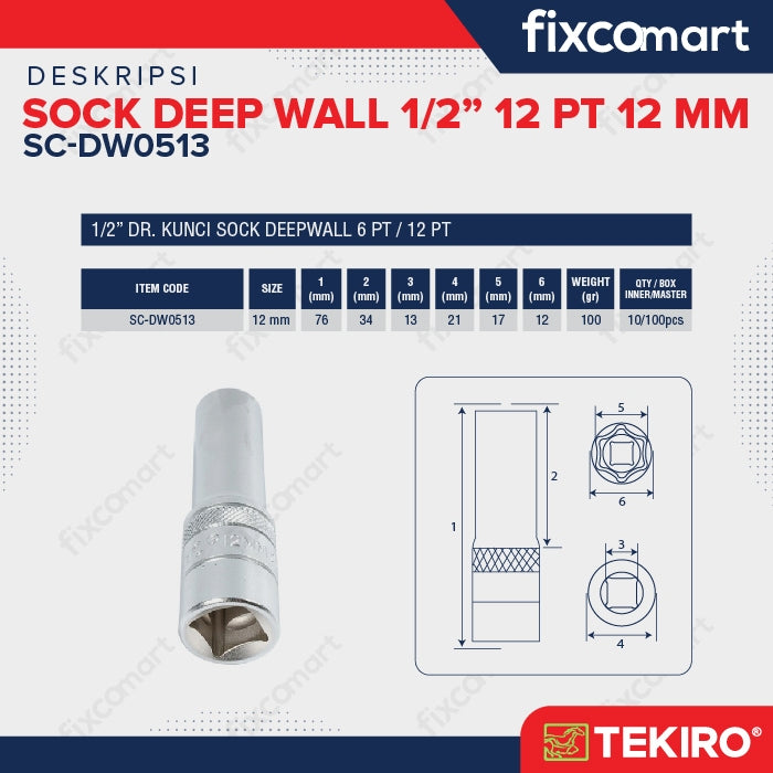 Tekiro Mata Sock Deep Wall 1/2 Inch 12PT 12 mm