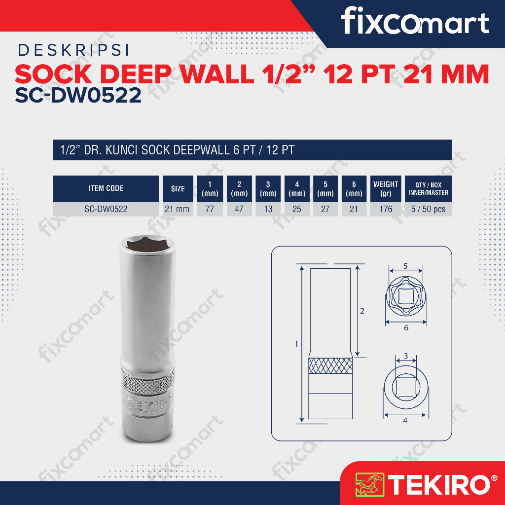 Tekiro Mata Sock Deep Wall 1/2 Inch 12PT 21 mm