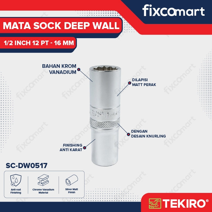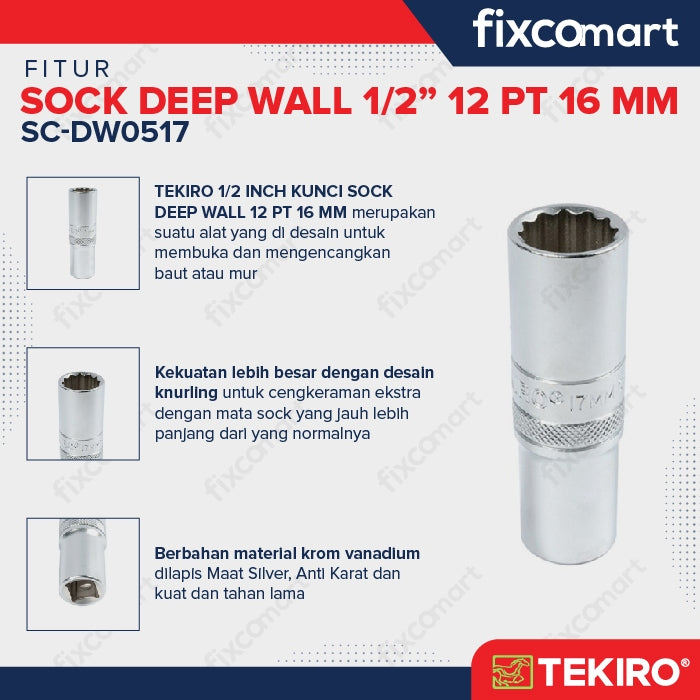 Tekiro Mata Sock Deep Wall 1/2 Inch 16 Mm (12Pt)
