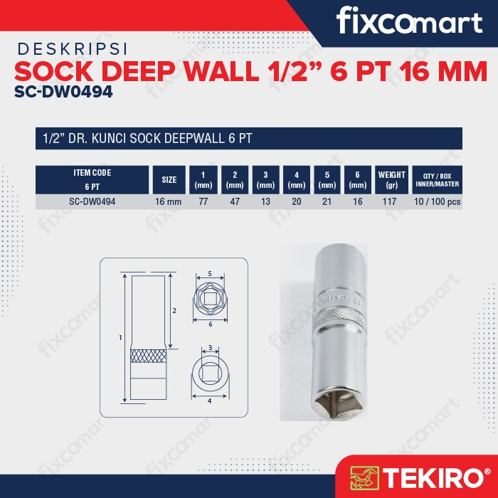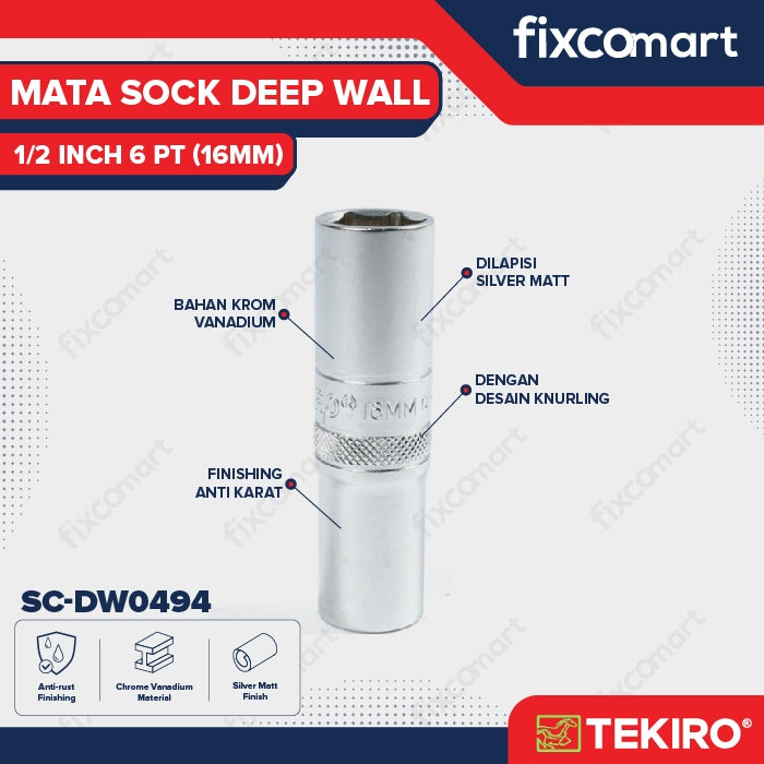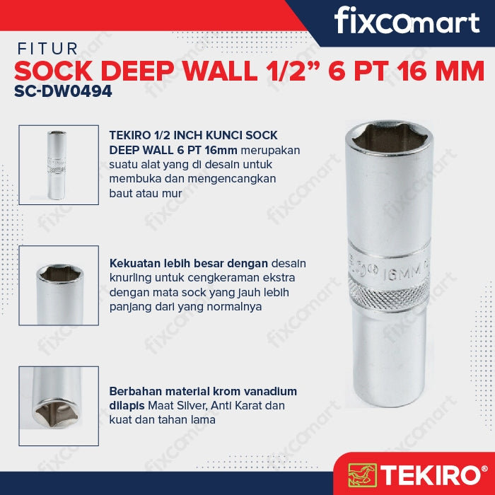 Tekiro Mata Sock Deep Wall 1/2 Inch 16 Mm 6Pt