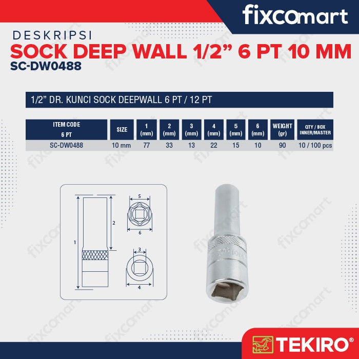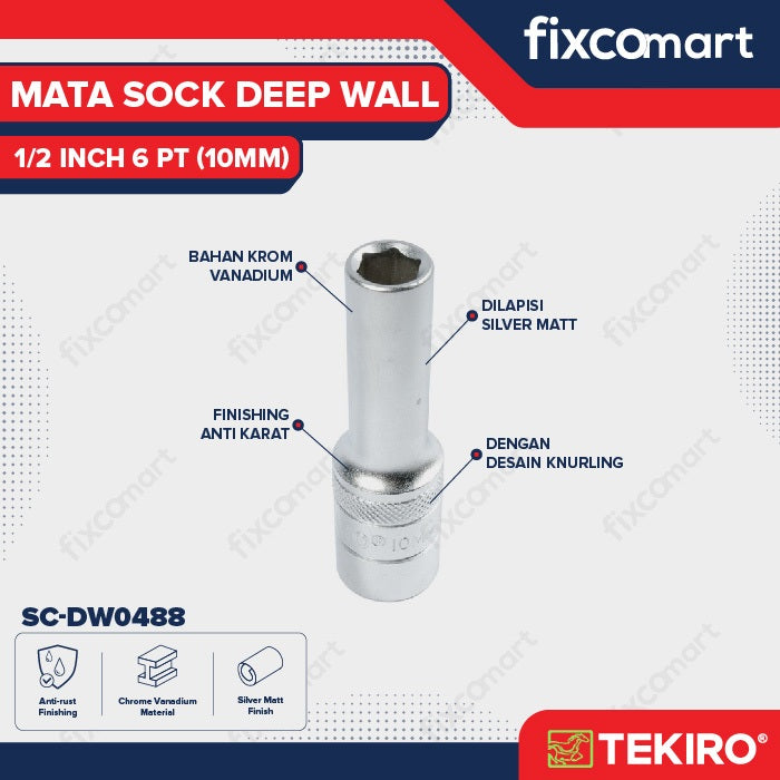 Tekiro Mata Sock Deep Wall 1/2 Inch 6Pt 10 Mm