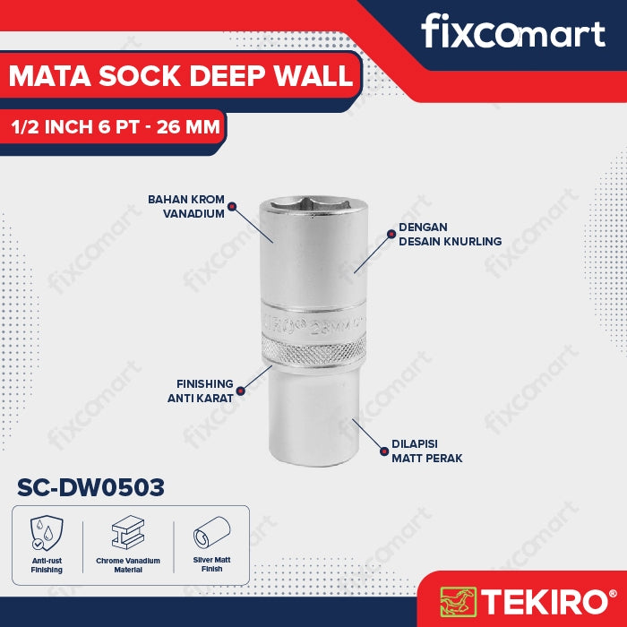 Tekiro Mata Sock Deep Wall 1/2 Inch 6PT 26 mm