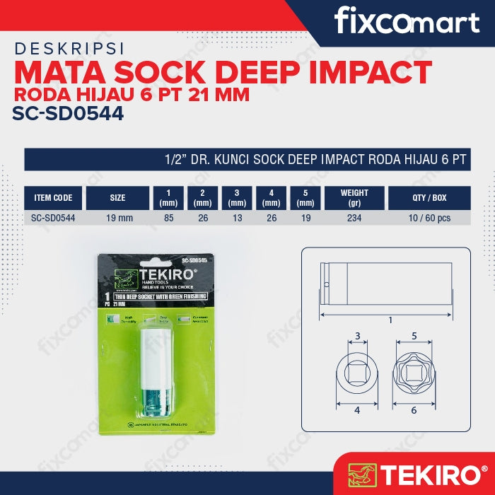 Tekiro Mata Sock Impact 1/2 Inch 19 Mm (Roda Hijau) / Tekiro Sock Seep Impact