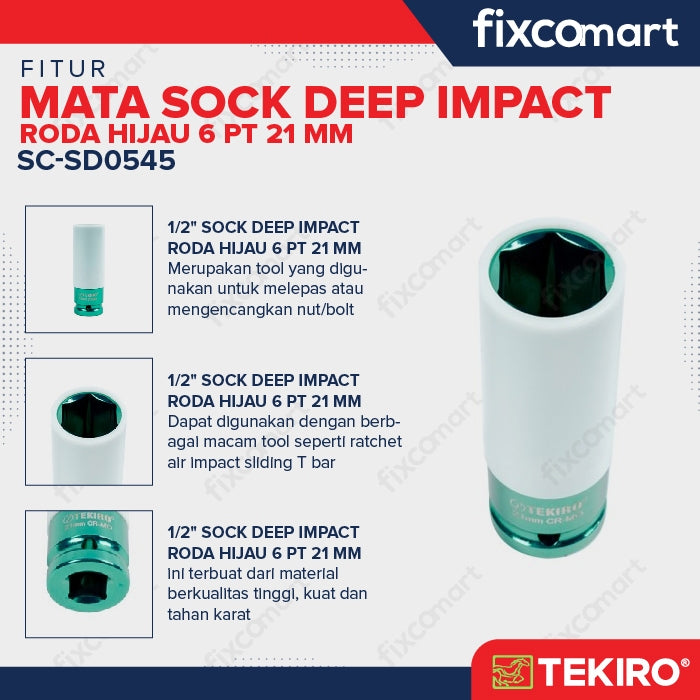 Tekiro Mata Sock Impact 1/2 Inch 21 Mm (Roda Hijau) / Tekiro Sock Seep Impact
