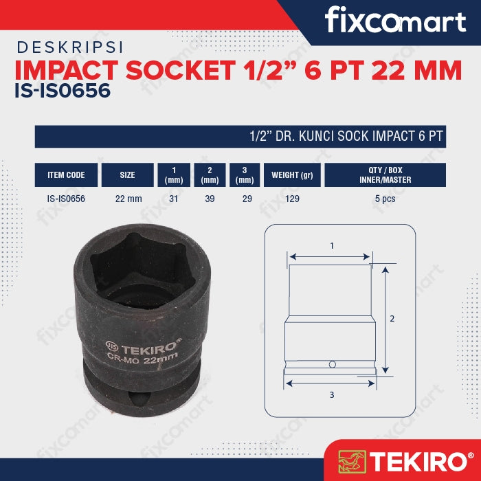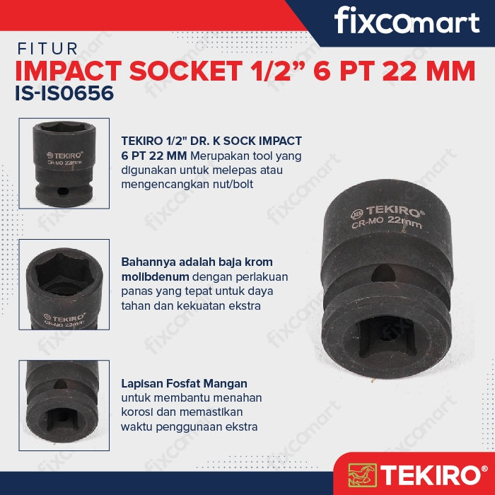Tekiro Mata Sock Impact 1/2 Inch 22 Mm 6 Pt / Tekiro Socket Impact