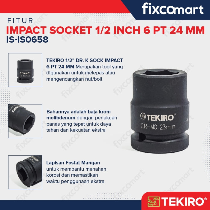 Tekiro Mata Sock Impact 1/2 Inch 24 Mm 6 Pt / Tekiro Socket Impact