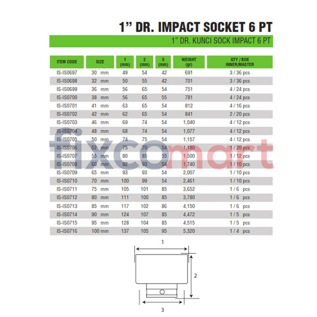 Tekiro Mata Sock Impact 1 Inch 60 Mm 6Pt