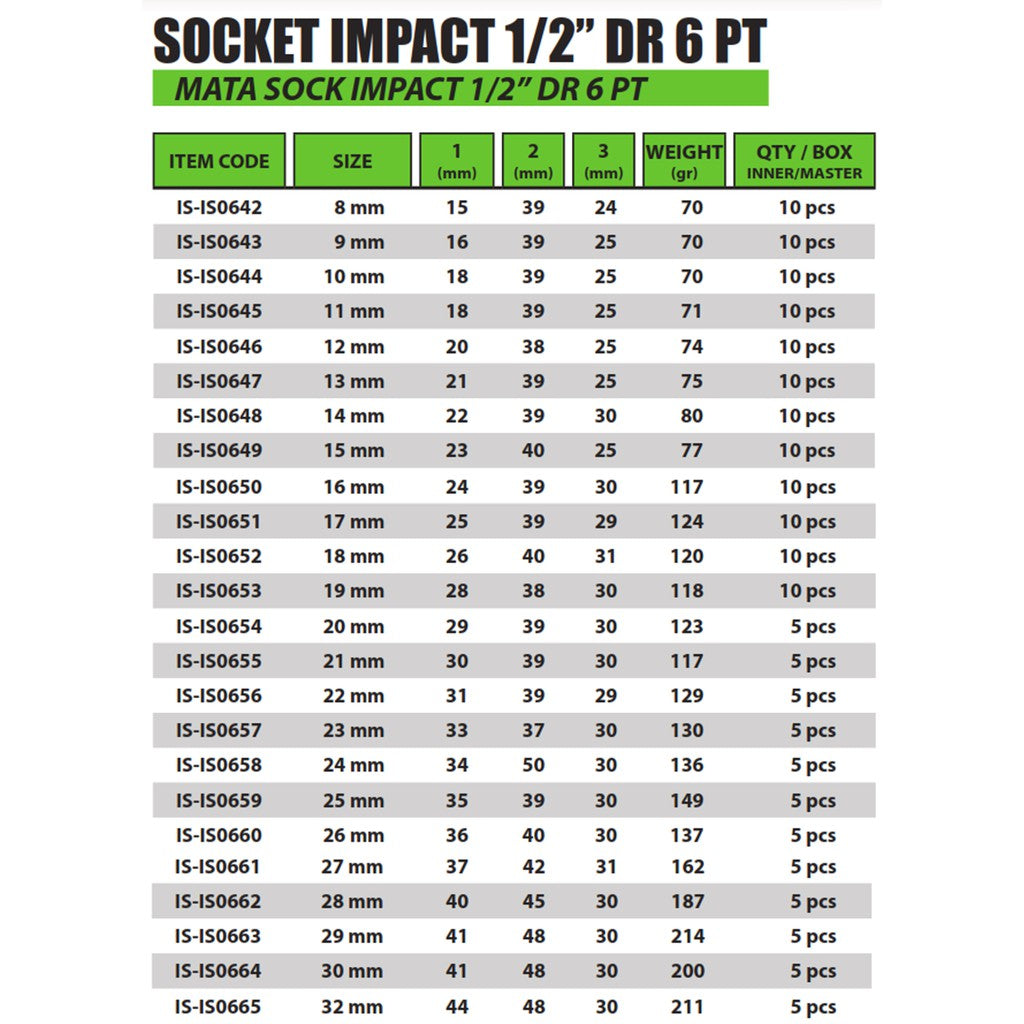 Berbagai macam mata socket yang tersedia di untuk memenuhi perlengkapan perkakas Anda, termasuk Mata Sock Impact yang merupakan jenis mata socket kuat dan presisi.