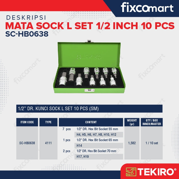 Tekiro Mata Sock L Set 1/2 Inch 10 Pcs / Tekiro Hex Bit Socket Set