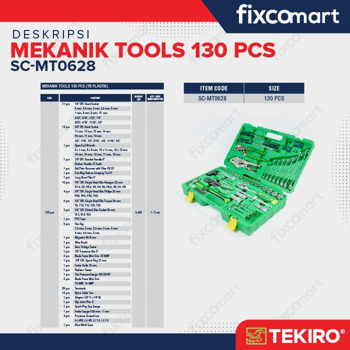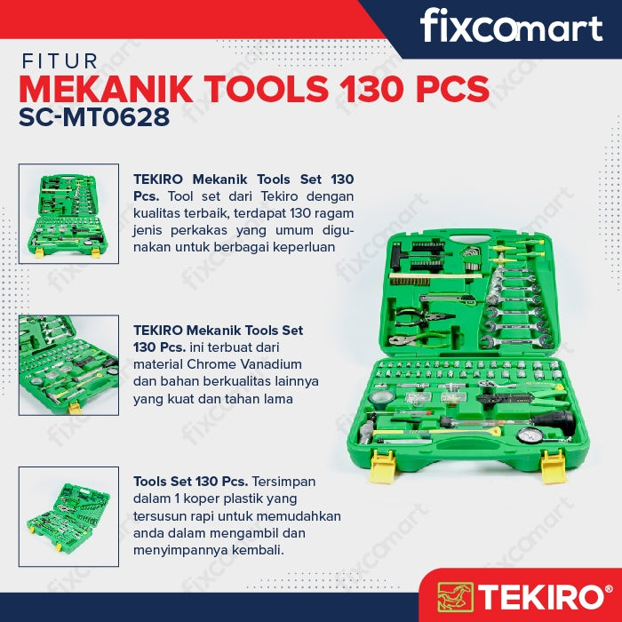 Tekiro Mechanic Tools 130 pcs dikenal juga dengan nama Mekanik Tool Kit / Mechanic Kit, yang sangat cocok pemilik bengkel ataupun DIY-ers.