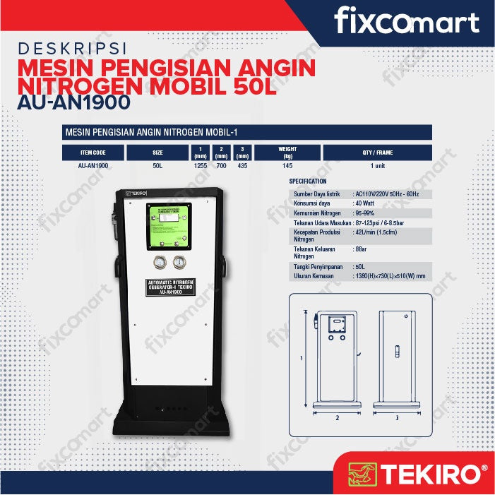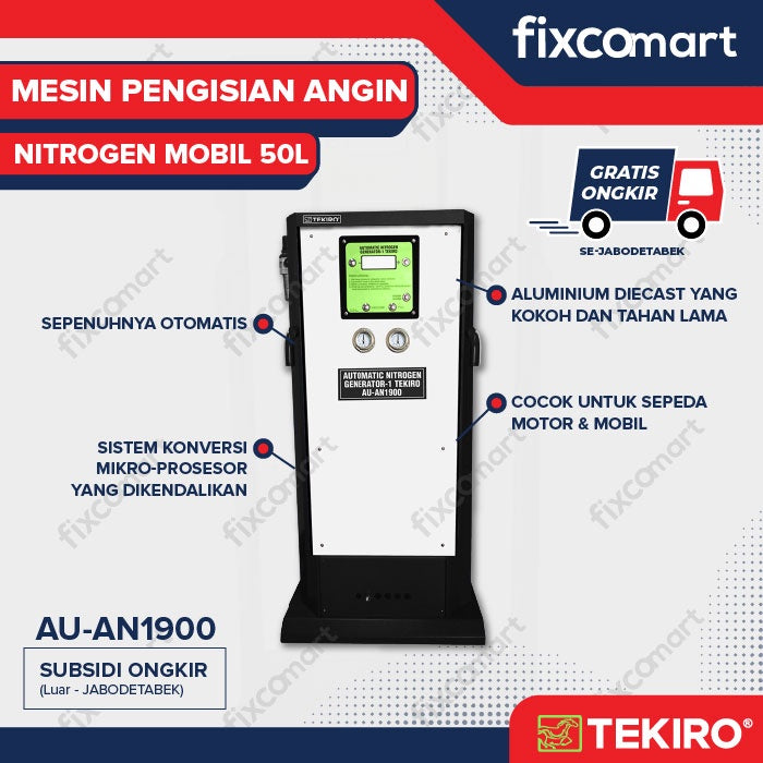 Dapatkan mesin ini sekarang juga dan nikmati kebebasan biaya pengiriman di area Jabodetabek! Jadikan pilihan cerdas untuk kualitas dan keamanan kendaraan Anda dengan Tekiro Mesin Nitrogen Isi Angin Ban Mobil 50L.