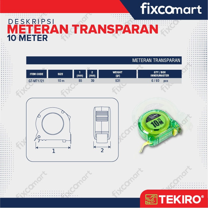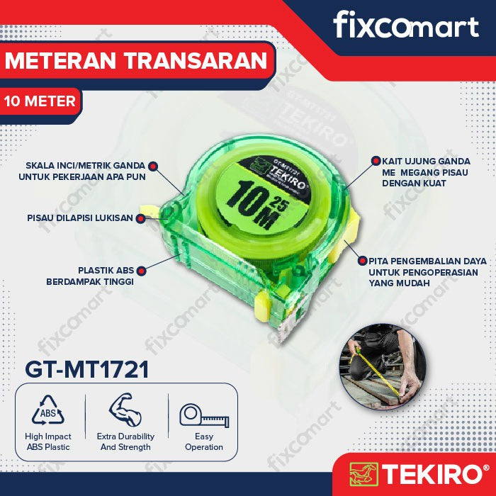 Tekiro Meteran Transparan 10 M / Tekiro Alat Ukur Manual