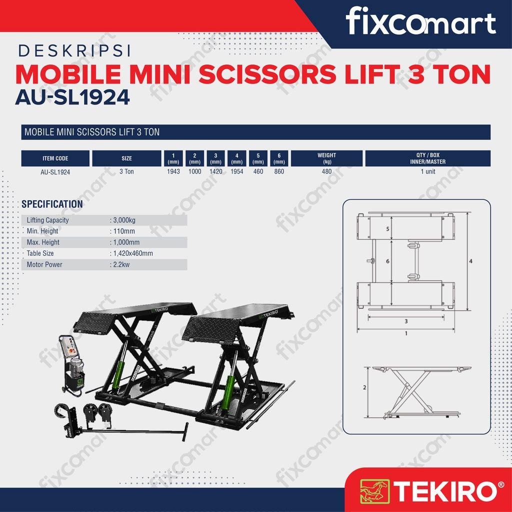Tekiro Mobile Mini Scissors 3 Ton / Hidrolik Lift Mobil 3 Ton Heavy Duty