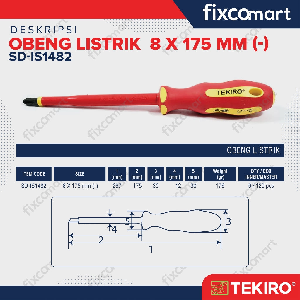 Tekiro Obeng Listrik (-) 8 X 175 mm / Tekiro Obeng Min / Obeng Plat