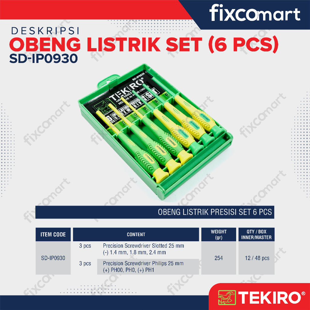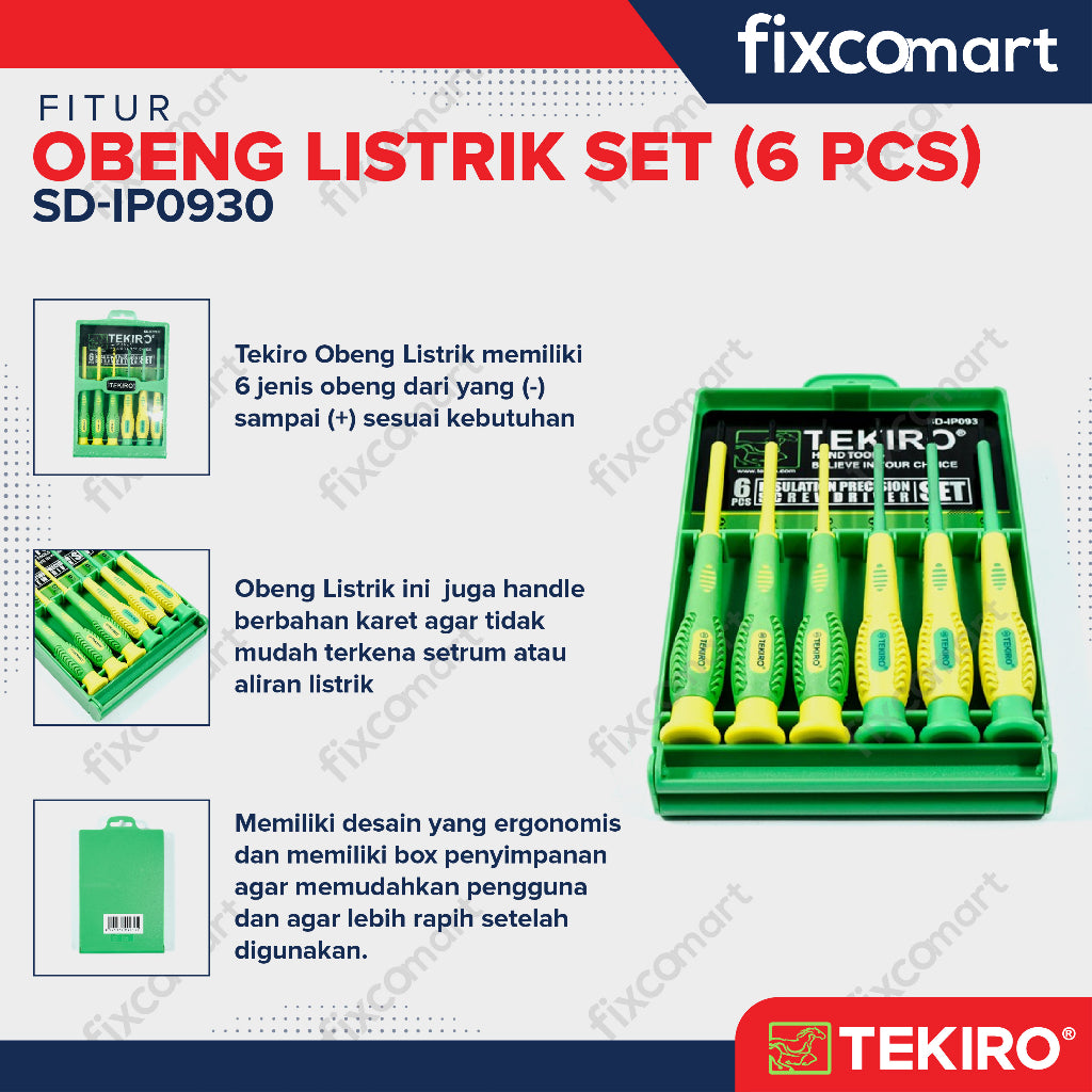 Tekiro Obeng Set Listrik Presisi 6 Pcs / Obeng Presisi / Obeng Listrik