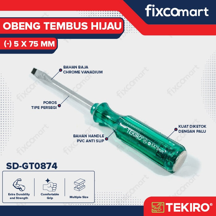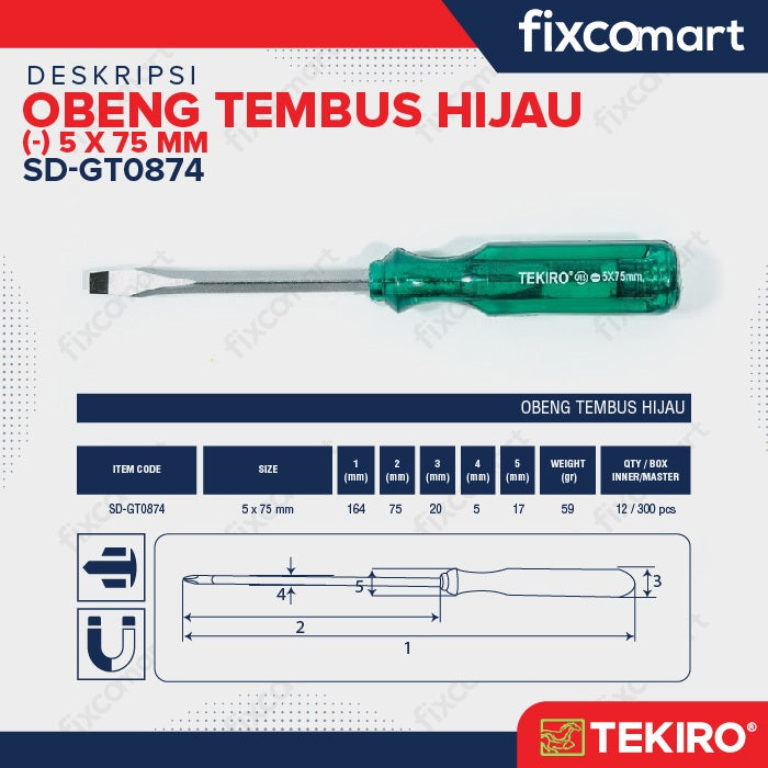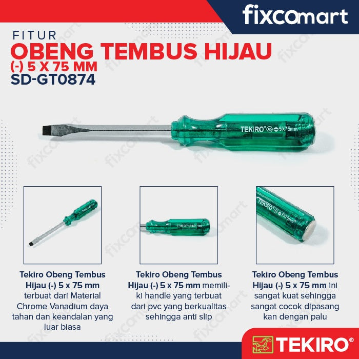 Tekiro Obeng Tembus Hijau (-) 5 X 75 Mm / Tekiro Obeng Go Thru