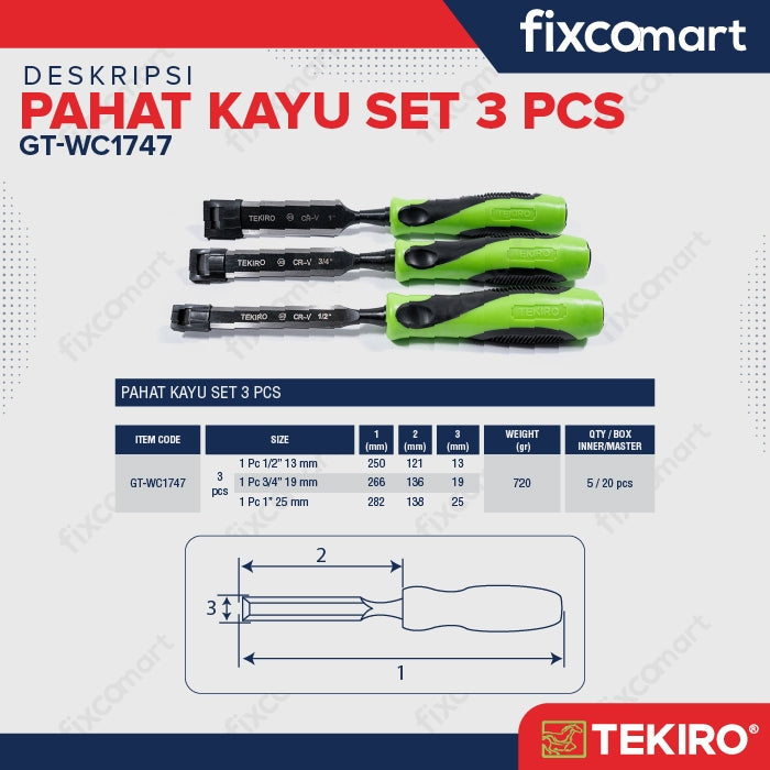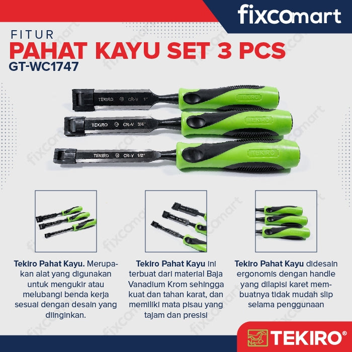 Pahat Kayu Set 3 Pcs Tekiro, cocok di gunakan bagi kebutuhan hoby maupun pekerjaan Woodworking anda.