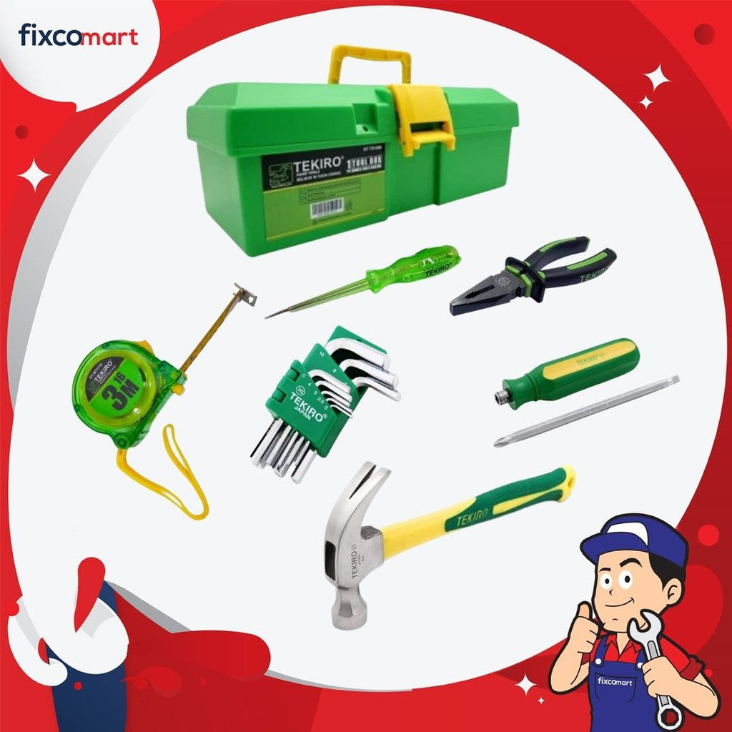 TEKIRO Paket Tekiro Tool Set Rumah Tangga Obeng Tang Meteran Palu Kunci L Toolbox