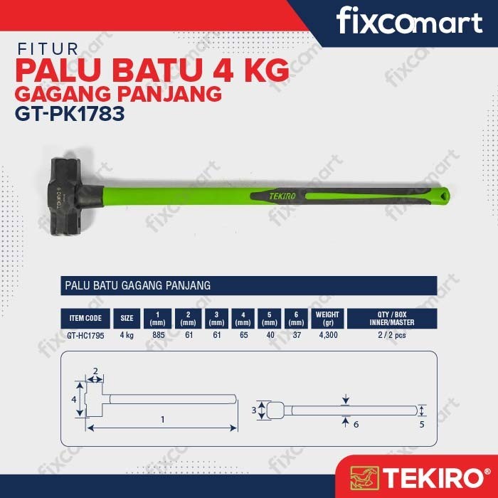 TEKIRO PALU BATU 4 KG GAGANG PANJANG - HAMMER CONSTRUCTION 4 KG TEKIRO