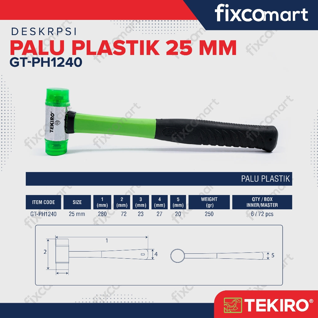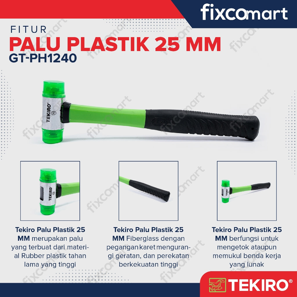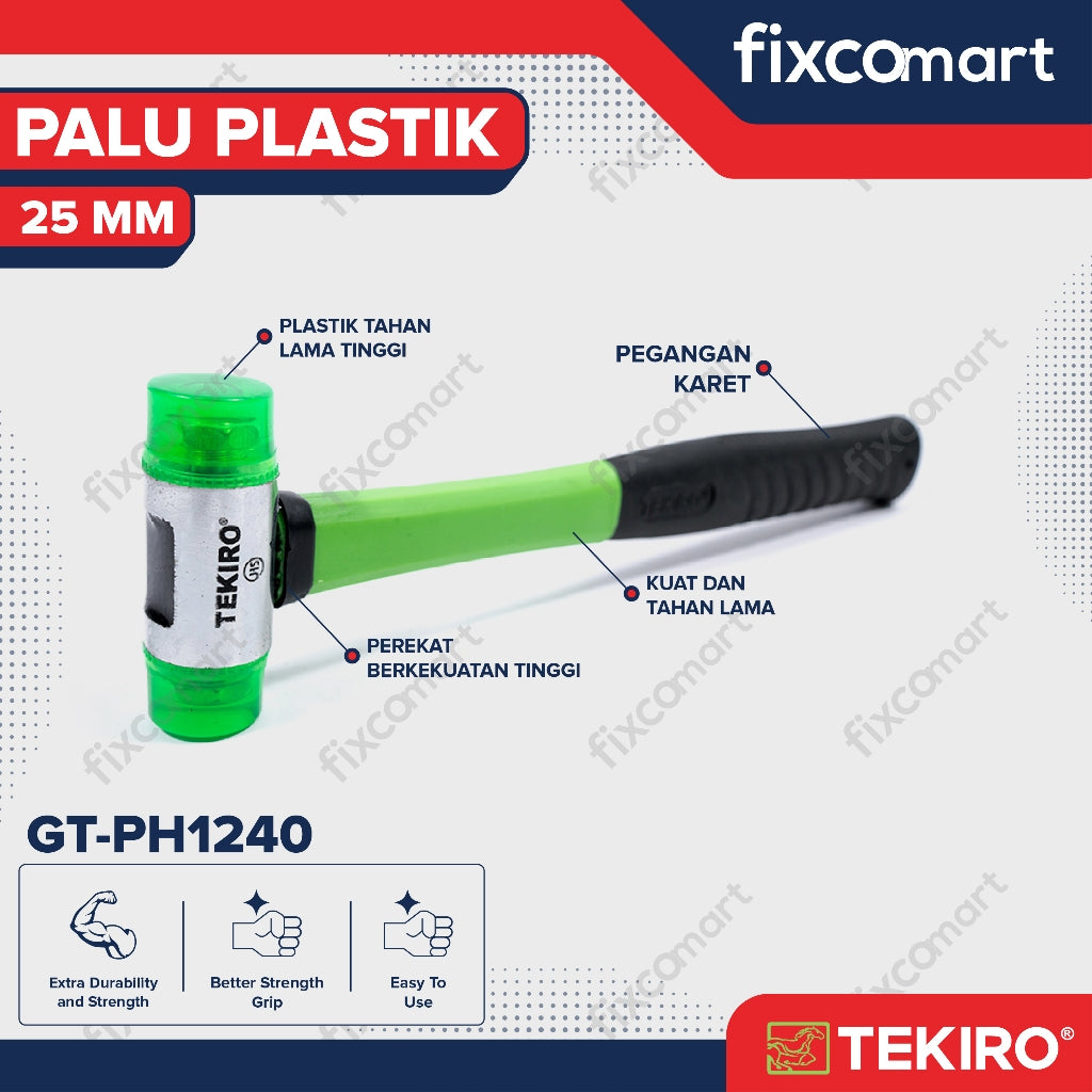 Palu Plastik Tekiro digunakan untuk memukul benda-benda yang lunak agar tidak tergores atau pecah yang dilengkapi dengan pegangan karet untuk kenyamanan tangan serta genggaman yang kuat