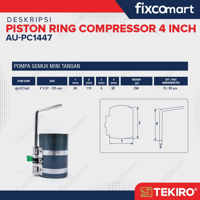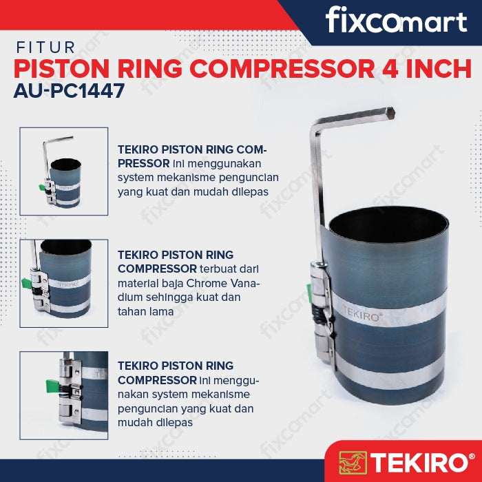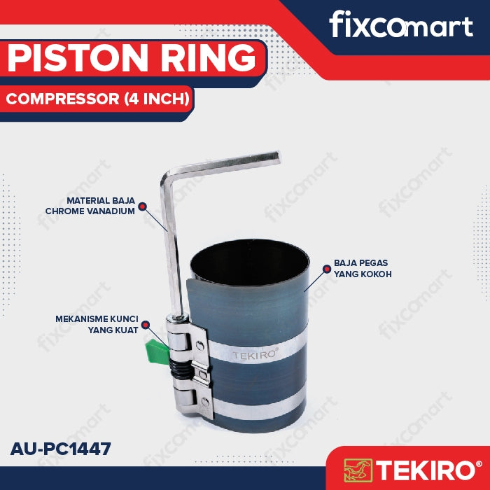 Piston Ring Compressor atau Treker Piston Biasa Disebut juga Press Piston adalah alat yang berfungsi untuk membantu piston dalam menjalankan proses kerja motor sebagai penyumbat untuk mencegah agar tidak terjadi kebocoran pada piston dinding silinder.