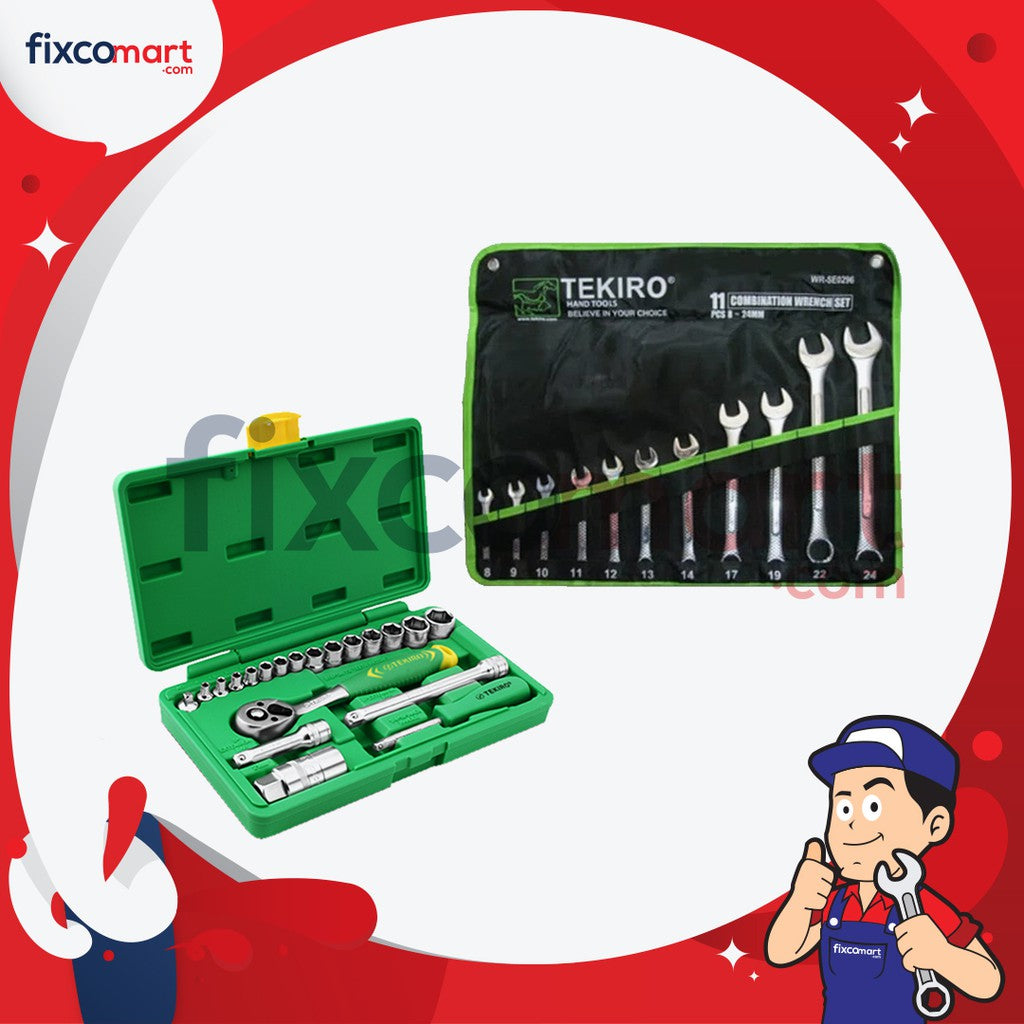 Tekiro Kunci Ring Pas Set 11 Pcs & Tekiro Socket Set 21 Pcs Tool Box Plastik sangat cocok digunakan untuk kebutuhan bengkel anda. Dengan harga tipis, kalian bisa mendapatkan dua produk berkualitas fantastis. Berikut ini isi dari produk yang akan didapat: